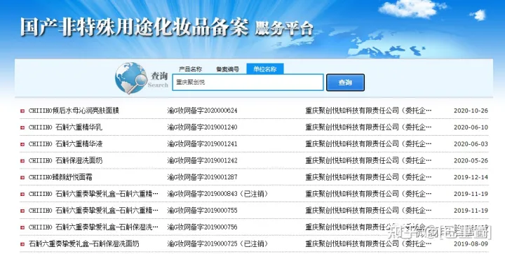 为了了解到这些产品的生产资质,我们到国家药品监督管理局进行查询,查询结果显示,倾后品牌的所有护肤产品均属于国产非特殊用途化妆品备案,然而前文所宣传的美白是特殊用途化妆品才具有的功效。
