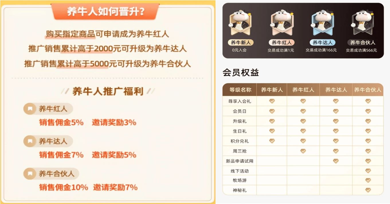 近日,新锐乳制品品牌认养一头牛控股集团有限公司(下文简称:认养一头牛)再次更新招股书,不仅披露了公司最新财务经营数据,还针对证监会提出的48个连环拷问作出了部分回应。 不过,新版招股书似乎越解释越含糊。抛弃认养模式、自有奶源语焉不详,乳业鲶鱼能否成功上岸? 避重就轻否认传销质疑 1月12日,证监会对认养一头牛递交的初版申报稿提出了48条反馈意见。其中,第10个问题要求公司补充披露认养奶牛模式的具体情况,并详细说明客户获取、业务开拓是否涉及传销,相关活动是否属于以代养殖、租养殖、联合养殖等方式非法吸收资金,是否涉及非法集资或非法公开发行业务以及是否存在纠纷或潜在纠纷。 一石激起千层浪,证监会对认养一头牛商业模式的质疑,令其陷入疑似传销的负面漩涡。 对此,公司在最新版招股书中回应称:2016-2017年期间与第三方电商开始吧推出牧场共建人、联合牧场主等活动,并不存在转让或赋予参与人特定奶牛所有权或收益权的情况,活动标的为可兑现特定数量牛奶产品的奶卡,也不存在发展下级、收取入门费和层级计酬等传销行为。该活动销售收款229.37万元,已于2018年底终止。 换而言之,无论是支付2999元获得牧场奶牛认养权,还是花费10000元成为联合牧场主、给奶牛取名字、定期获得奶牛的照片和生长数据,一切都只是为了让消费者更有参与感的营销手段,消费者从来没有真正认养过任何一头奶牛。为了洗脱传销嫌疑,认养一头牛不惜推翻曾让自己一炮而红的认养模式。 然而在招股书中,公司巧妙地绕过了2020年推出的会员机制。 据彼时官方公众号信息显示,消费者购买2000元以下的产品,可以申请成为初级分销员,获得养牛红人称号。推广销售累计超2000元,可升级为养牛达人称号。超5000元成为养牛合伙人。根据推广效果,养牛合伙人可以从中获得5%至10%的佣金。如果朋友接受邀请加入养牛团队,消费者还能获得3%至7%的拉新奖励。 金字塔型销售模式、要求参与者购买商品获得加入资格、直接或间接以发展人员数量为计酬或返利依据等特点,才是认养一头牛被质疑为传销的症结所在。公司一边避重就轻地解释早期营销手段,一边悄悄删除了相关活动宣传、修改了会员体系,种种操作恐怕无法彻底消除历史问题带来的隐患。 左图为旧版会员机制,右图为新版会员机制