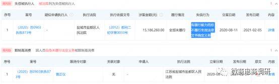 (图片来源:企查查) 但据企查查显示,曹正仪因为自身未履行法定义务被限制高消费,被法院列为失信执行人,其担任法人的国顺通科技集团有限公司也在盐城市亭湖区市场监督管理局的抽查中发现问题。