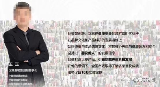来源:简康产品优势(图片版)ppt 经过百度检索菱锰面料并没有查找到相关的资料,难道价值一亿美元的产品配方菱锰面料就这?不过注意到一篇由中国市场质量周刊发表的长青(中国)纤缇美体衣理念遭广泛质疑的文章中提及到菱锰面料,其中就指出 泉灵石是一种什么物质?(据了解现在的简康就是原来的长青纤缇美体衣,下文中会介绍到。)查阅相关资料,目前没有科学权威的解释,对泉录石的介绍更多停留在概念阶段。在长青公司官网上,这一款美体衣的面料有另一种说法,叫做菱锰矿石面料。在该公司的网站页面上,有这样一行介绍:通过菱锰矿石面料释放的能量波长,促进督脉和膀胱经血液循环,保暖去湿。此处的菱锰矿石与销售人员所说的泉灵石是否为同一物质,目前尚无科学结论。菱锰矿为阿根廷国石,在中国贵州湖南和东北等地的锰矿床中有大量菱锰矿产出,它是提取锰的重要矿物原料,其色泽艳丽,可作为低档宝石和工艺装饰品原料。 在对菱锰矿石的科学解释中,对生理方面的影响,有带有刺激性的过滤器、能缓解哮喘与呼吸疾病、对循环系统和肾有净化作用等说法,但此说法并未权威出处,其科学性有待进一步认证。 至于对人体的影响,菱锰矿石带来的更多的是象征意义方面的作用,如菱锰矿代表着无私的爱与同情,人们把它看做是最有益心灵与人际关系的最佳宝石之类的介绍,大都是与人的情操、情绪与社交方面的影响功能。 来源:简康产品优势(图片版)ppt 一款内衣真的有如此神奇吗?如此宣传难道不违反广告法吗?广告法第四条指出:广告不得含有虚假或者引人误解的内容,不得欺骗、误导消费者;广告法第十六条指出,医疗、药品、医疗器械广告不得含有下列内容:凡是明示或者暗示具有医疗作用的,夸大功能、虚假宣传或者其他容易给消费者造成误导的,违反相关法律法规,或涉嫌虚假宣传。 下面来看看简康的运作模式奖励机制: 分享奖分享一个人可以拿(10%) 启动奖(20%)终身只拿1次,2.4万累计拿完为止 拼搏奖(10%)称为对碰奖,无限层碰,封顶600万,每年递增20% 感恩奖(下面伙伴的对碰奖的10%) 例如:比如你分享了5个人,每个人以10000一个月的工资来算 5个人×10000块×10%×12月=6万 25个人×10000块×10%×12月=30万 125个人×10000块×10%×12月=150万 什么是拼搏奖,需要两边产生业绩才能拿, 例如:1个人去帮助下面两个伙伴成交2.4万 ,自己得9600。3个人去帮助4个人各赚9600,自己得4800。7个人去帮助8个人各赚9600,自己得9600。15个人去帮助16个人各赚9600,自己得19200。31个人去帮助32个人各赚9600,自己得38400。63个人去帮助64个人各赚9600, 自己得76800。 全球分红 幸福女神 : 公司的全球纤缇板块的业绩1%(取人数的平均值)比如公司的总业绩是3千万×0.01%=30万÷10个人(拿到幸福女神)=3万×12=36万,1年考核期 凤凰女神 : 公司的全球纤缇板块的业绩1%(取人数的平均值)比如公司的总业绩是3千万×0.01%=30万÷5个人(拿到凤凰女神)=6万×12个月=72万 1年考核期(凤凰女神可以拿双项全球分红) 挑战机制(以下都是当月达标) 美丽女神(左右业绩各10万) 时尚女神(左右业绩各20万) 智慧女神(左右业绩各50万) 幸福女神(帮助下面,2名有血缘关系的伙伴拿到宝马) 凤凰女神(帮助,2名有血缘关系的伙伴拿到幸福女神) 看完简康运作模式及奖励机制,禁止传销条例明确指出下列行为,属于传销行为:(一)组织者或者经营者通过发展人员,要求被发展人员发展其他人员加入,对发展的人员以其直接或者间接滚动发展的人员数量为依据计算和给付报酬(包括物质奖励和其他经济利益,下同),牟惹法利益的;(二)组织者或者经营者通过发展人员,要求被发展人员交纳费用或者以认购商品等方式变相交纳费用,取得加入或者发展其他人员加入的资格,牟惹法利益的;(三)组织者或者经营者通过发展人员,要求被发展人员发展其他人员加入,形成上下线关系,并以下线的销售业绩为依据计算和给付上线报酬,牟惹法利益的。然而康运作模式及奖励机制与禁止传销条例所指出的行为完全吻合,所以其涉嫌传销。 此文开头朱先生的推荐人曾表示王正为简康的创始人及卫康生物集团副董事长。据相关媒体指出长青纤缇内衣(上文中我们提及到一篇由中国市场质量周刊发表的名为长青(中国)纤缇美体衣理念遭广泛质疑的文章。)其实就是升级版后的简康。下图中明确表示王正先生不但是简康品牌的创奇人,而且还是卫康生物集团副董事长及益宝副董事长兼执行总裁。