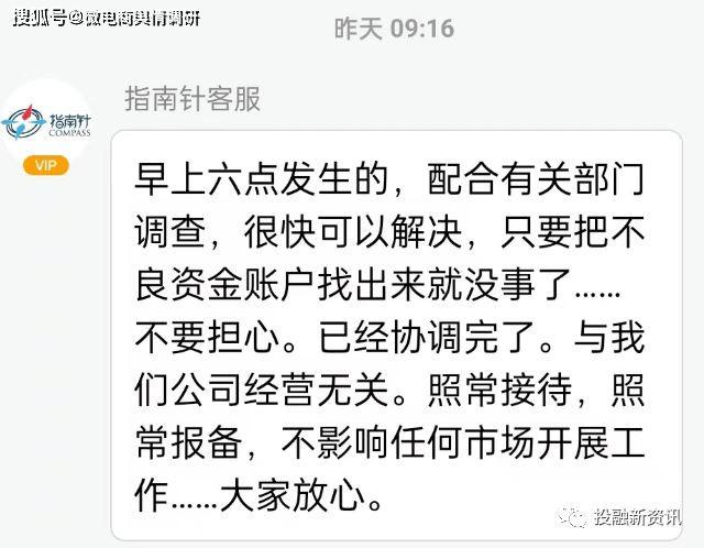 与此同时,指南针公司客服还安抚用户称是配合有关部门调查,已经协调完了,与我们公司经营无关。 现在已经过了指南针公司2月11日发布的通知中所谓的闭馆3-5天时间,参与的会员目前也是炸开了锅。显然是为了再度安抚会员,这才有了文章开头的声明,声明中,指南针各种不服,不仅表示要提出复议诉讼,还要向上级部门进行投诉。其目的就是想将矛头指向监管部门,达到激化局势、引导舆论的作用。 投融新资讯在此奉劝贵州遵义指南针商品交易有限责任公司:与其洗脑、激化矛盾,还不如将实情、风险如实告知会员,何去何从由会员自己决定,同时也提醒指南针的会员们不要再幻想了,更不要听平台领导人忽悠,洗脑,说什么你不离我不弃、我们保持初心、给平台时间、平台资金充足之类的谎言,报警维权才是唯一拿回血汗钱的有效途径! |