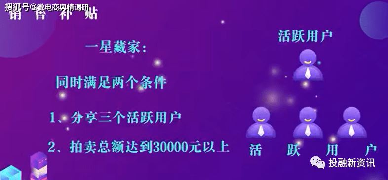 竞拍客户级别为一星藏家~七星藏家,分别拿全网服务费2%的:的:16%~12%~10%~8%~6%~4%~2%其中50%均分,50%加权。 举例: 一星藏家: