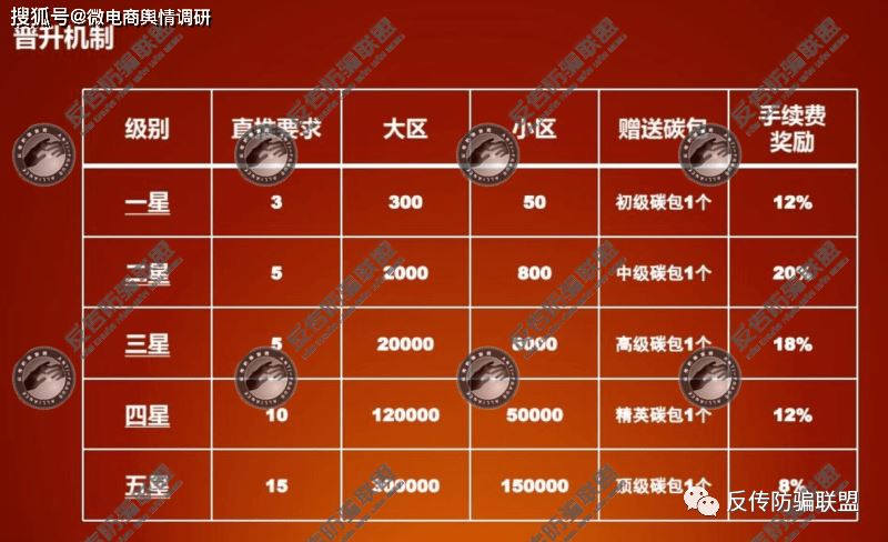碳积分玩法:碳包种类有六种,分别为初级碳包、中级碳包、进级碳包、高级碳包、精英碳包、顶级碳包。 初级碳包:消耗10碳积分可购买一个初级碳包,可获得1活跃度,任务周期为30天,总产量为12碳积分,净收益2碳积分,最多可持有16个; 中级碳包:消耗100碳积分可购买一个中级碳包,可获得10活跃度,任务周期为30天,总产量为125碳积分,净收益25碳积分,最多可持有8个; 进级碳包:消耗500碳积分可购买一个进级碳包,可获得50活跃度,任务周期为30天,总产量为625碳积分,净收益125碳积分,最多可持有4个; 高级碳包:消耗1000碳积分可购买一个高级碳包,可获得100活跃度,任务周期为30天,总产量为1250碳积分,净收益250碳积分,最多可持有2个; 精英碳包:消耗5000碳积分可购买一个精英碳包,可获得500活跃度,任务周期为30天,总产量为6500碳积分,净收益1500碳积分,最多可持有1个; 顶级碳包:消耗10000碳积分可购买一个顶级碳包,可获得1000活跃度,任务周期为30天,总产量13000碳积分,净收益3000碳积分,最多可持有1个。 表面上看来邻城家园平台似乎是一个零撸的躺赚平台,但参考我国的禁止传销条例后不难发现,邻城家园的这种多层级发展获得报酬,并以购买所谓的碳包获得收益的方式运营已涉嫌传销。且邻城家园平台内并没有实质性的产品,据其制度模式看来,邻城家园又是一个彻头彻尾的资金盘。 宣称与多家上市企业合作却无迹可寻,反传防骗联盟在此醒大家:近段时间反传防骗联盟发现有很多资金盘都打着国企央企旗号来行骗,毕竟有这些大企业做背书,骗起人来更方便,圈的钱更多,但无论这些项目吹嘘得多么高大上,我们在投资之前都要懂得分辨,而不是看到高回报后一味加入,希望大家都捂好自己的口袋!不知道未来厦门邻路网络科技有限公司运营下的邻城家园将要收割多少韭菜?反传防骗联盟将持续关注! |