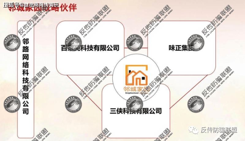 据推广员发布的资料显示,厦门邻路网络科技有限公司在2022年联合新三板上市企业、厦门优质上市公司百家亮科技,共同推出碳积分兑换低碳绿色环保产品的服务,同时与福建味正集团、福建三侠信息科技有限公司、厦门艾淇尔科技有限公司等企业建立了战略合作关系。 但经反传防骗联盟查询,上述企业与厦门邻路网络科技有限公司并无任何股权上的交集,其宣传的战略合作伙伴反传防骗联盟不知从何而来? 据推广员发布的宣传资料显示,邻城家园的制度模式如下: