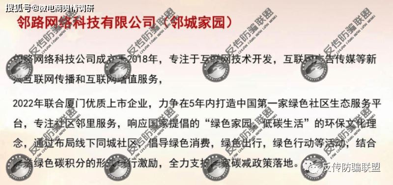 近日,有不少用户向反传防骗联盟咨询一个名为邻城家园的项目前景如何,该平台宣称是与某上市企业联合推出的绿色社区生态服务平台。那么,邻城家园是一个怎样的平台?由哪家公司运营?所谓的与上市企业联合推出又有何依据?制度模式该如何解读?带着这一系列的疑问,反传防骗联盟决定一探究竟!
