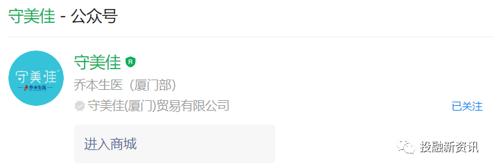 据守美佳微信公众号后台显示,守美佳为乔本生医的厦门部,该公众号主体运营公司为守美佳(厦门)贸易有限公司。