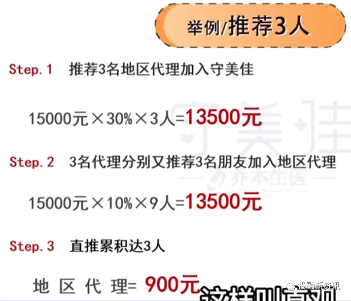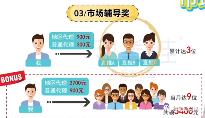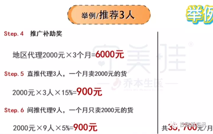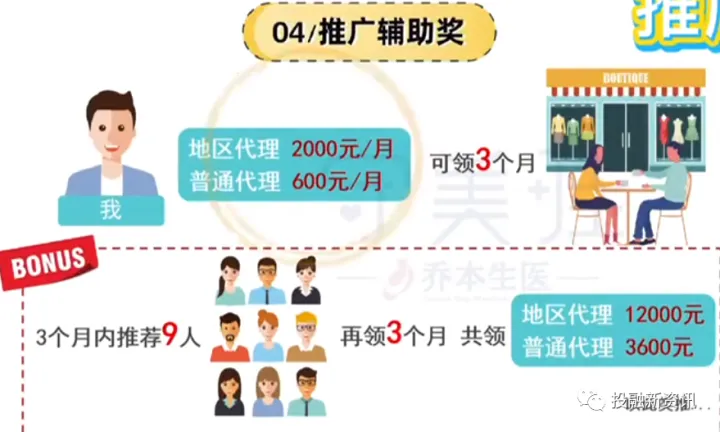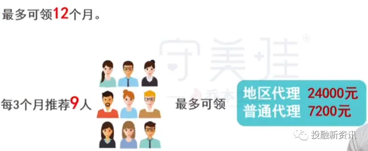 若是每3个月都能推荐9人,地区代理最多可领24000元的奖金,普通代理最多可领7200元的奖金。