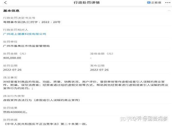 就在降中国频道为戒上降摇旗呐喊,鼓舞人心的时刻。7月26日,广州市番禺区市场监督管理局依据中华人民共和国反不正当竞争法第二十条第一款针对广州戒上降科技有限公司虚假宣传的违法行为作出40万元人民币的行政处罚。