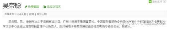 那么拥有如此超能量的吴帝聪究竟是何许人也呢? 公开资料显示:吴帝聪,男,1986年出生于贵州省金沙县,广州中商资本集团董事长、中国服务贸易协会直播电商委员会秘书长、国家开放大学培训中心企业运营官项目管理中心负责人,四川省电子商务发展促进会社交电商专委会会长,投资人。 在讲师网,本网观察员注意到,吴帝聪被冠名为亚洲招商实战导师,并有多本著作发行。由此可见,吴帝聪先生还是一位成功学大师,精神领袖。