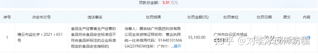 据企查查公开信息显示,腾吉纳(广州)医药科技有限公司是一家专业贴牌加工生产各类降食品,片剂,粉剂,固体饮料的厂家,成立于2018年2月,位于广州市白云区,该公司的法人代表是周佳。 投融新资讯注意到,该公司在2021年6月曾因不符合食品所标注的企业标准规定的食品安全指标,被相关行政单位处以5.51万元的罚款。