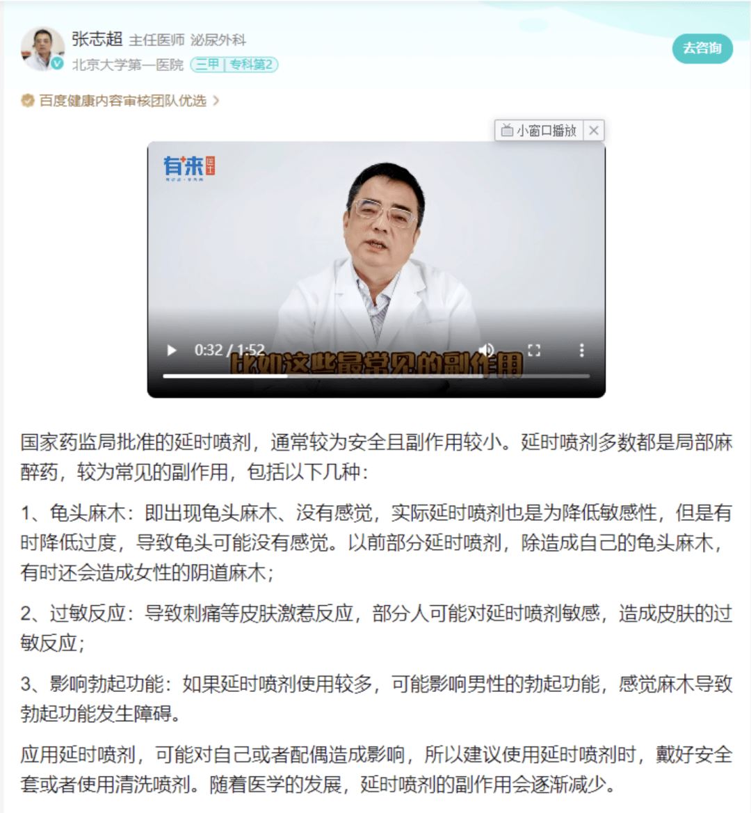 据北京大学第一医院泌尿外科主任医师张志超介绍,国家药监局批准的延时喷剂,通常较为安全且副作用较小。延时喷剂多数都是局部麻醉药,较为常见的副作用,包括以下几种: 1、龟头麻木:即出现龟头麻木、没有感觉,实际延时喷剂也是为降低敏感性,但是有时降低过度,导致龟头可能没有感觉。以前部分延时喷剂,除造成自己的龟头麻木,有时还会造成女性的阴道麻木; 2、过敏反应:导致刺痛等皮肤激惹反应,部分人可能对延时喷剂敏感,造成皮肤的过敏反应; 3、影响勃起功能:如果延时喷剂使用较多,可能影响男性的勃起功能,感觉麻木导致勃起功能发生障碍。 应用延时喷剂,可能对自己或者配偶造成影响,所以建议使用延时喷剂时,戴好安全套或者使用清洗喷剂。随着医学的发展,延时喷剂的副作用会逐渐减少。 按张志超主任的说法,人初油外用延时剂如果经过国家药监局批准,产品有麻醉成分的话,也是合法的。那么该产品有相关备案吗? 清扬君查阅人初集团官网发现,加强版人初油外用延时喷剂是深圳市人初医疗用品有限公司根据外用延时剂团标T/CRH 0001-2019生产的一款改善男性房事时间的外用延时产品,主要成分是纯水、乙醇、花椒Zanthoxylum bungeanum Maxim.、白芷A.dahurica(Fisch)Benth. et Hook、肉苁蓉Cistanche deserticola Ma、枸杞子Lycium barbarum L,并没有笨佐卡因、定因两种麻醉药剂,也没有在药监局备案批文。 如果真是这样的话,王海这一次又为广大男性朋友干了一件大事,值得为他点赞! 文章来源:清扬君 |