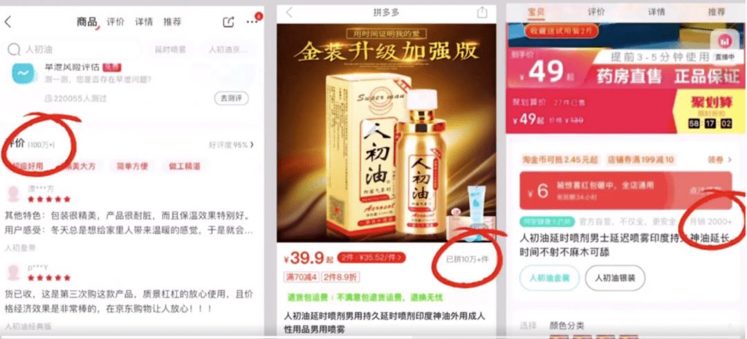 深圳市人初医疗用品有限公司官网显示,该公司成立于1997年5月28日。人初集团显示,人初油湿巾自1997年问世以来,一直占领着男性产品的半壁江山。王海检测视频截图也从侧面印证了这一点:京东的评论100万+,拼多多已拼10万+件,淘宝的月销2000+。 但让人万万没有想到的是,销量过百万的人初产品竟然添加了麻醉产品,这也难怪产品有延时作用了。如果没有作用的话,只能说明麻醉剂添加的少了。