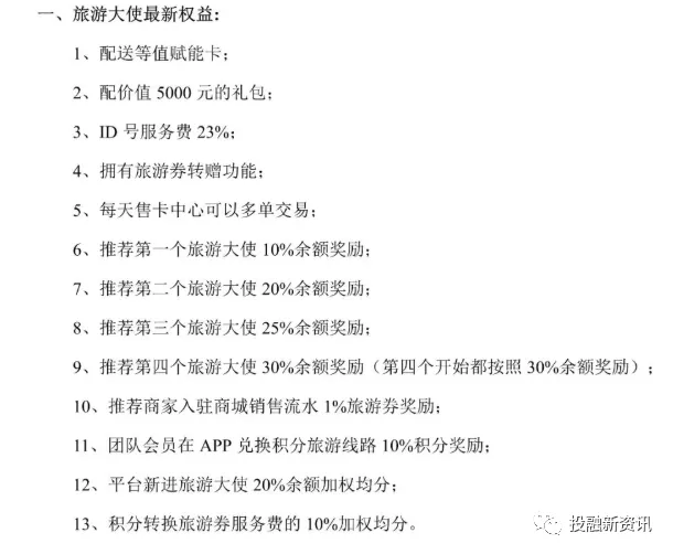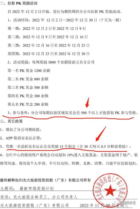 投融新资讯任认为,光大旅投以免费注册的噱头,要求投资者实名认证获取入门资格,用推荐奖励的形式引诱推广者发展人员来获取利益,并且通过发展人员形成的团队业绩为依据,进行升级和利润的分配,这样的推广方式已与我国的法律格格不入了,更不用说这样的资本盘原本就没有保障,崩盘只是迟早的事情。 版权声明:投融新资讯原创,未经授权不得转载。 |