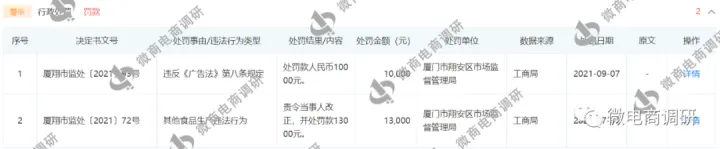 据企查查显示,厦门美滋颜实业有限公司、厦门同元堂生物科技有限公司及厦门仟草食品科技有限公司所属行业均为食品制造业,不涉及保健品相关产品。其中,厦门美滋颜实业有限公司曾因违反广告法及食品生产违法行为被行政处罚。
