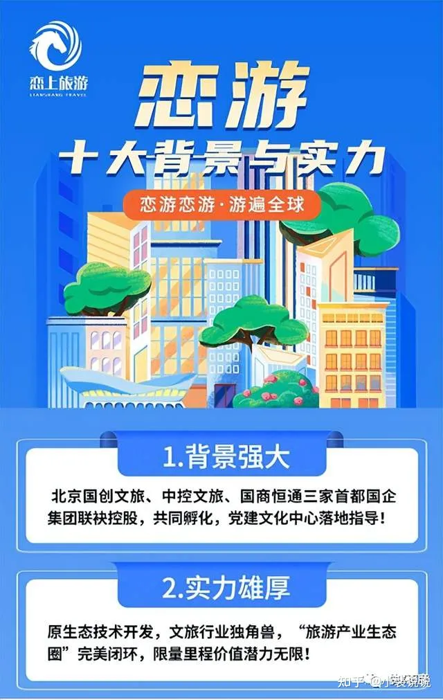图片来源:恋游APP推广信息 公司背景: 恋游APP是由北京国创文旅、中控文旅、国商恒通三家首都国企集团联合控股的企业,公司背景如此之雄厚,原生态技术发展,文旅行业独角兽,旅游行业生态圈 完美闭环,限量里程价值潜力无限!