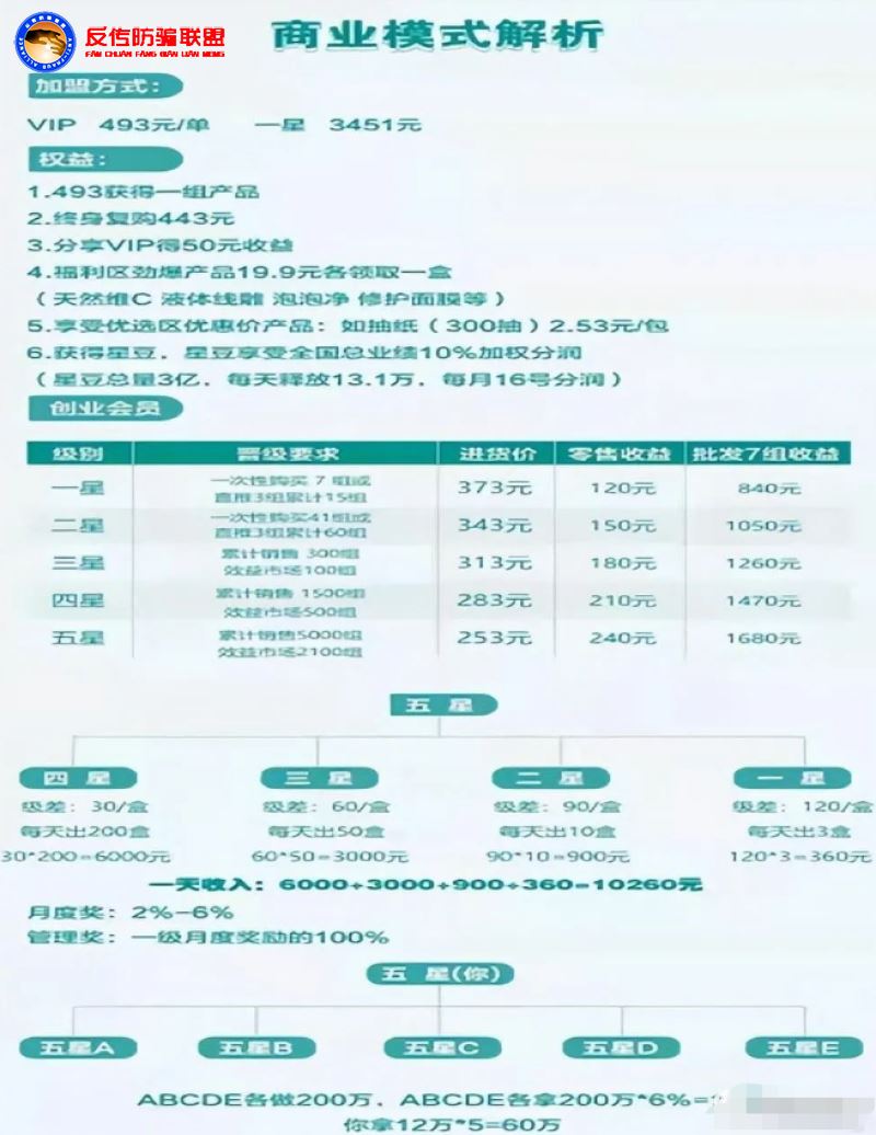 记者随后在推荐人发来的资料中发现,云星站具有四大特点、五大收入。四大特点:1、业绩永不清零(上一秒到一个级别,下一秒就按照下个级别计酬)2、奖金不封顶3、无PV值4、无任何强制性消费。五大管道收入:1、快(主推区级差)2、稳(优选区复购)3、大(月度奖+管理奖)4、久(星豆分红,不光久,而且大)5、躺(供应链,躺赚大钱)。 根据直销管理条例及禁止传销条例规定,云星站奖金模式存在设门槛、拉人头、团队计酬,已涉嫌传销。 11月23日,记者就此事致电福瑞达集团公司康妆大道事业部,截至发稿前未有回复。 |