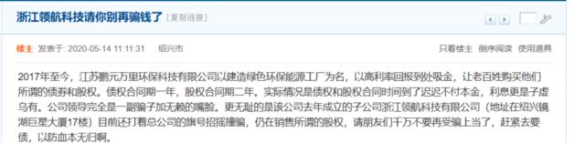 早在2020年,就有网友爆料称,鹏元万里公司和相关的领航公司都是以股权投资为幌子,行非法集资之实。