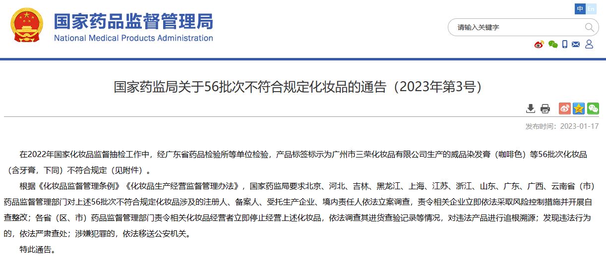 此外在今年1月17日,国家药品监督管理局发布的56批次不符合规定化妆品的通告(2023年第3号),其中,广州市佳昊生物科技有限公司所生产的Algn爱兰歌娜氨基酸植萃净彻洗发水因不符合规定而遭到通报。