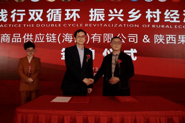 公开资料显示,2023年2月26日,陕西果业集团有限公司副总经理李江龙与金盾椰城国际商品供应链(海南)有限公司总经理尹海洋代表双方公司签署了合作协议书。推广人员表示,金盾供应链目前的农副产品都由陕西果业集团有限公司提供。