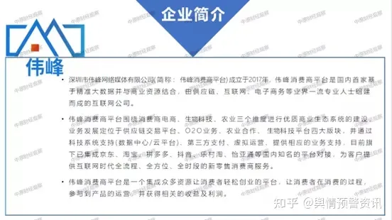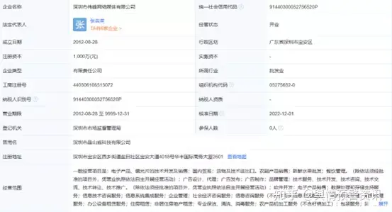 图片来源:该平台推广资料 公司背景,宣传零风险投资? 经查,伟峰电商的经营主体为深圳市伟峰网络媒体有限公司,该公司成立于2012年8月28日,法定代表人张杏英,监事陈龙清,最终受益人为张杏英,注册资本1000万元整,从该企业2021年度报告中得知实缴100万元整。