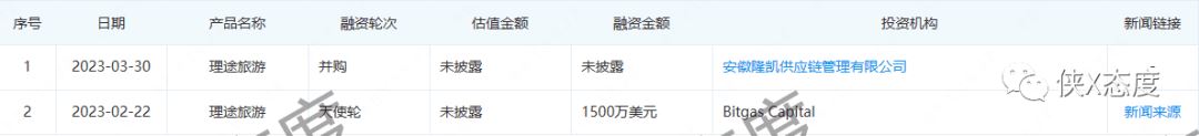 图片来源:企查查 另外,根据企查查显示该项目于2023年2月22日获得Bitgas capital1500万美元的天使轮风险投资,同年次月30日被安徽颅供应链管理有限公司并购。