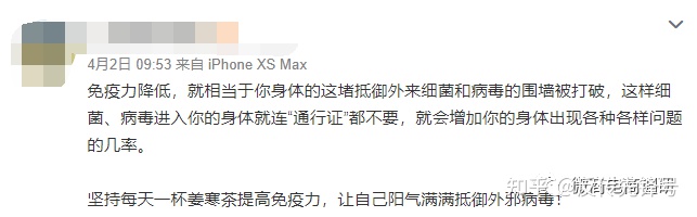 图片 同样在微博上,坚持每天一杯姜寒茶提高免疫力的说法也不遑多让。