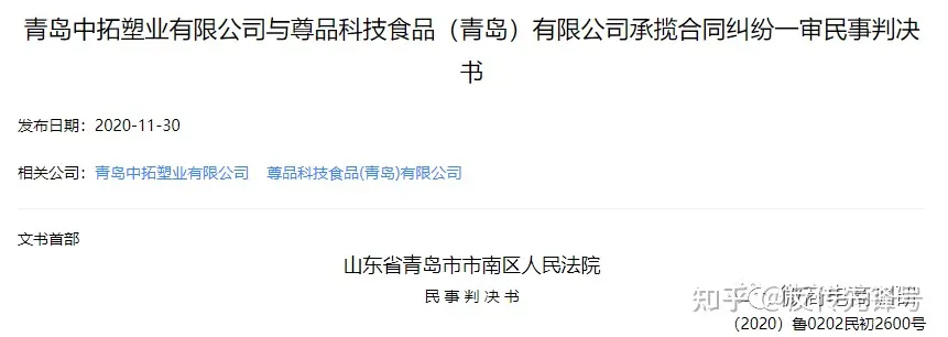 图片 2020年,青岛中拓塑业有限公司与尊品科技食品(青岛)有限公司承揽合同纠纷一审民事判决书公示,这场官司的最终结果是:山东省青岛市市南区人民法院判决尊品科技食品(青岛)有限公司向青岛中拓塑业有限公司支付货款10362.6元;山东省青岛市中级人民法院二审维持原判。