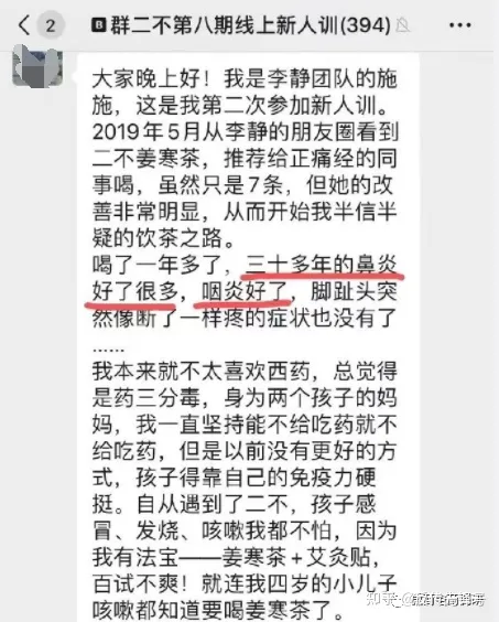 图片 无独有偶,关于姜寒茶以及其他产品,也另有案例表示二不大降旗下的这些产品可以治疗鼻炎、支气管炎、咽炎等病症。