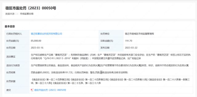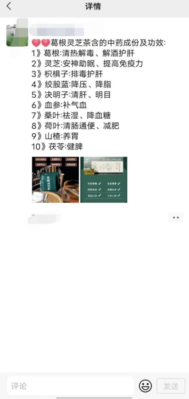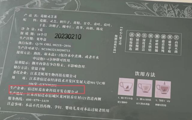 由产品包装图可知,葛根灵芝茶的生产企业为宿迁旺葛农业科技开发有限公司。值得注意的是,该公司曾因建设工程施工合同纠纷案由被起诉1次,因买卖合同纠纷案由被起诉1次,因未按时履行法律义务被申请强制执行2次,因企业自身未履行法定义务被限制高消费,还被宿城区市场监督管理局抽查发现问题2次并记录在案。 2023年3月16日,该公司还因生产标注虚假生产日期葛根灵芝茶;利用新的食品原料(丹参)生产葛根灵芝茶未经国家有关部门安全评估;在生产的葛根灵芝茶标签上标注不实的执行标准代号Q/NORL0021S-2016和配料(绞股蓝);未按规定建立并遵守进货查验记录、出厂检验记录的原因被宿迁市宿城区市场监督管理局行政处罚,罚款85000元,没收违法所得191.70元。 敬葛堂宣传集种植、生产、研发、销售为一体,公司却没有专利信息,产品也是代加工生产,生产企业还因违反食品安全法生产葛根灵芝茶被行政处罚。那么敬葛堂的产品究竟如何呢? 普通食品宣传保健功效,涉嫌虚假宣传 据了解,敬葛堂有人参黄精压片糖果、葛根灵芝茶、清轻快草本茶、葛根酒、葛根山药玉米糊、葛根水晶饺子粉等多种产品,其中人参黄精压片糖果、葛根灵芝茶和清轻快草本茶是代理们的主推产品。