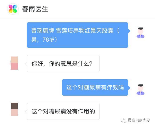 眼下,还有群众在网上咨询相关医生普瑞康牌的这款产品对治疗糖尿病的真实效用,医生给出的肯定回复是,对糖尿病并没有作用。