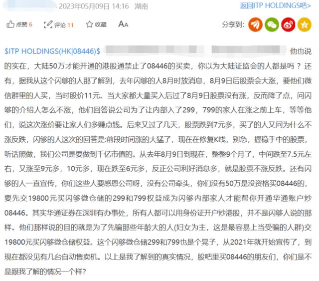 在东方财富网旗下的股吧中,与ITP Holdings和闪够集团相关的争议也是与日俱增。
