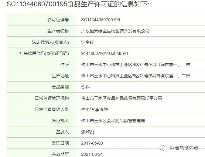 据QS查询网显示,该许可证号对应的食品类别为饮料,也就是说,该产品只是普通食品,并非保健食品或药品。
