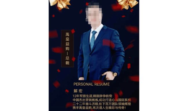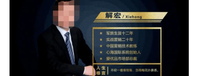 心海系统,解宏其人 上文提到现任禹皇益购总裁的人名为解宏,调查发现,他的另外一个身份是大名鼎鼎的心海国际系统创始人,此人生于1971年,开封人,长达12年的军旅生涯结束后,他于2000年5月转业回到地方,并开启了创业之路,加入天狮多年来收获颇丰,甚至还收到了天狮集团总裁李金元颁发的忠诚奖,成功英雄名车奖、豪华游艇奖同样早已收入囊中。在过往22年间,解宏自称历经9个平台,从事直销行业的时间达到了18年,另外微商2年、币圈2年,曾从白手起家到身价千万,从身价千万到负债300万,后来又从负债走向清账。